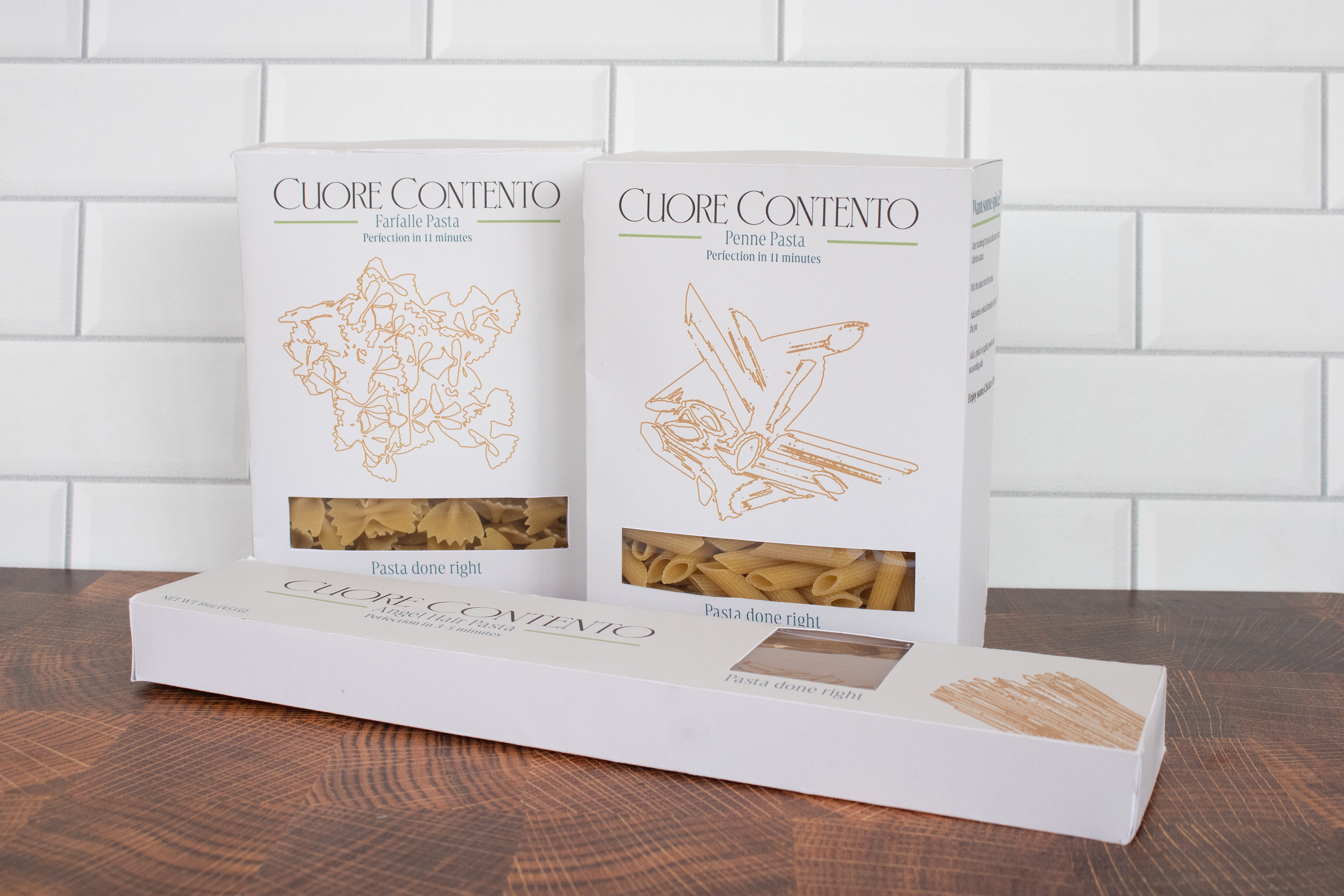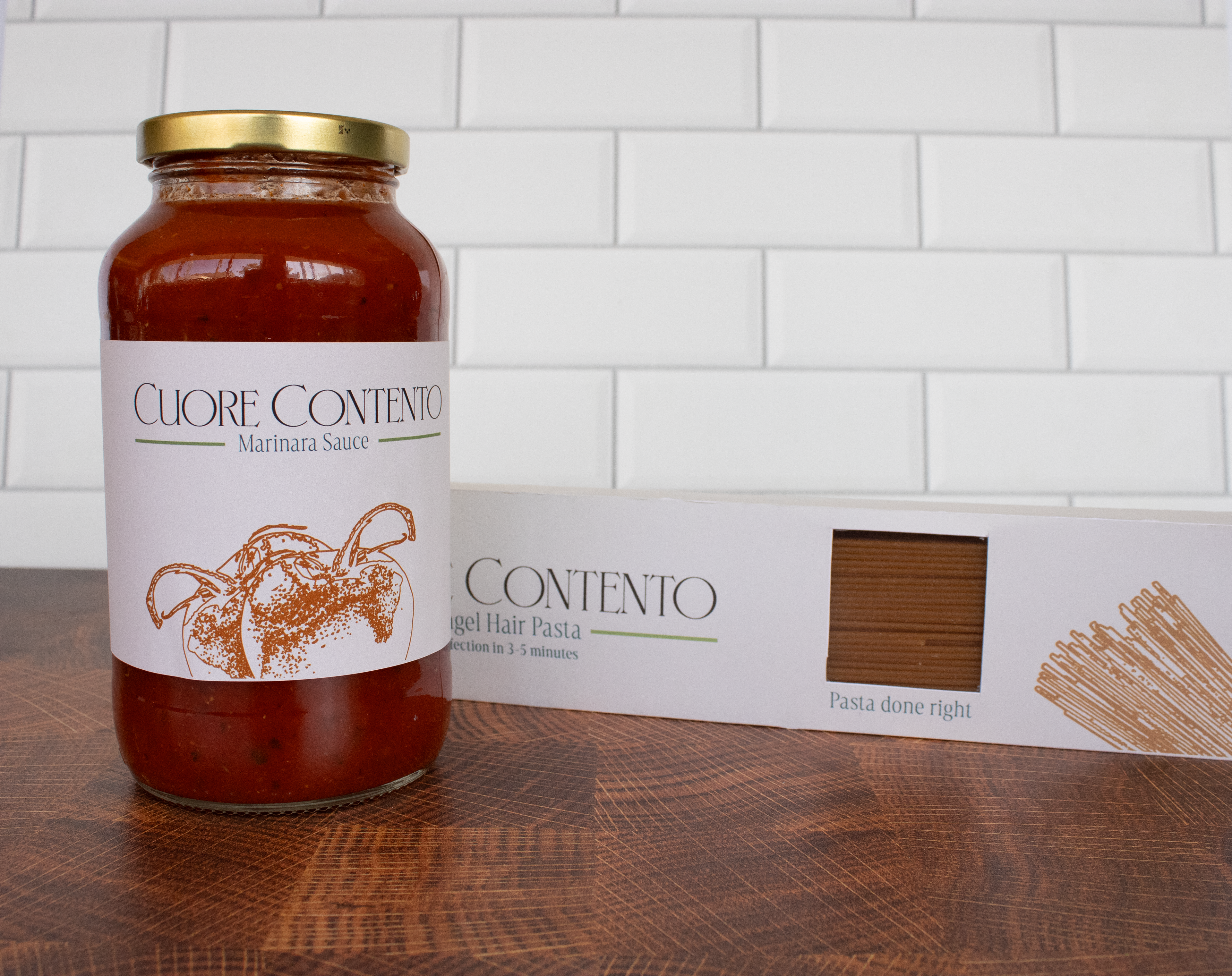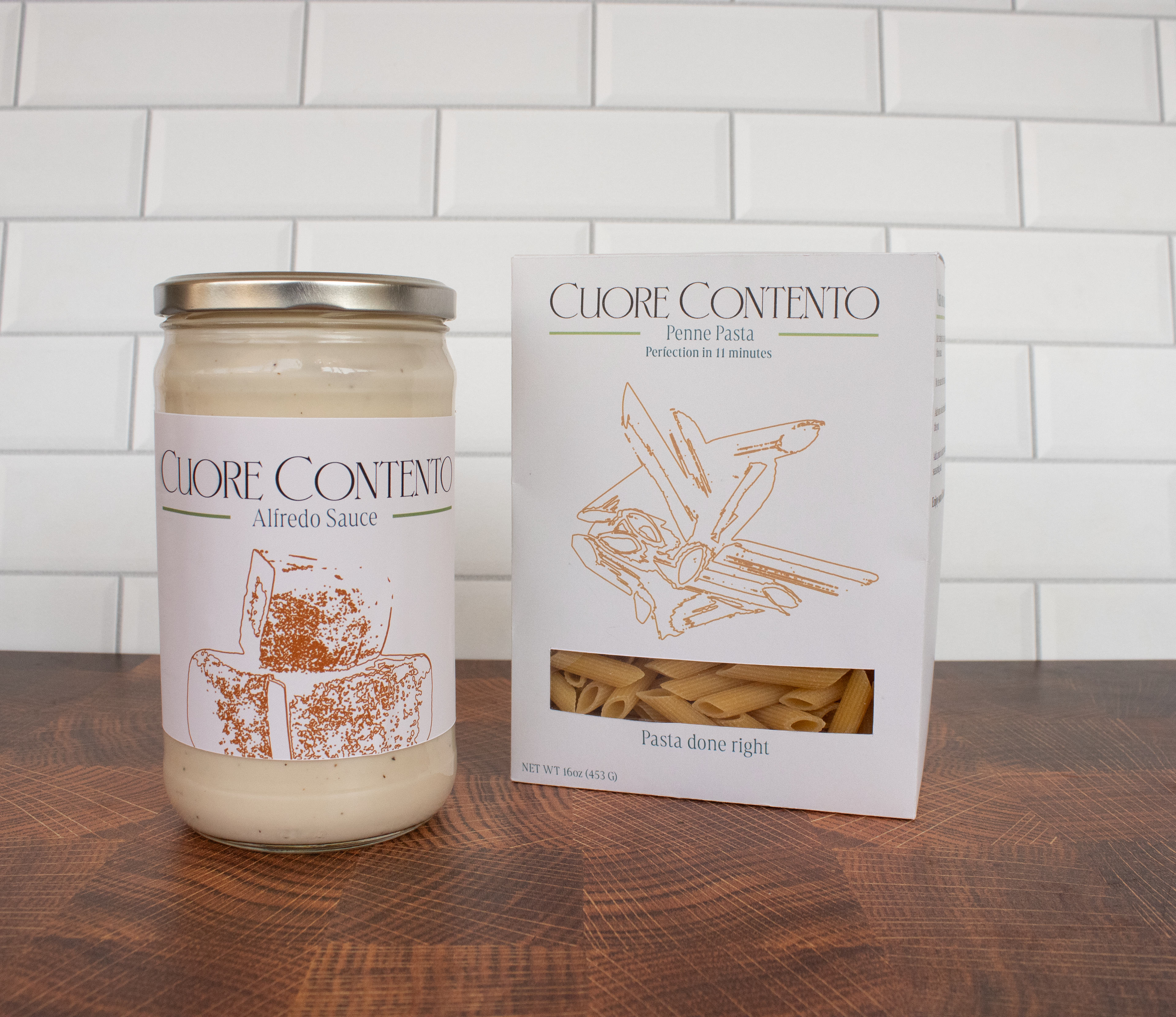 Cuore Contento is a small pasta company making their pasta by hand. I needed to make a logo for them as well as produce packaging for different pastas and sauces.